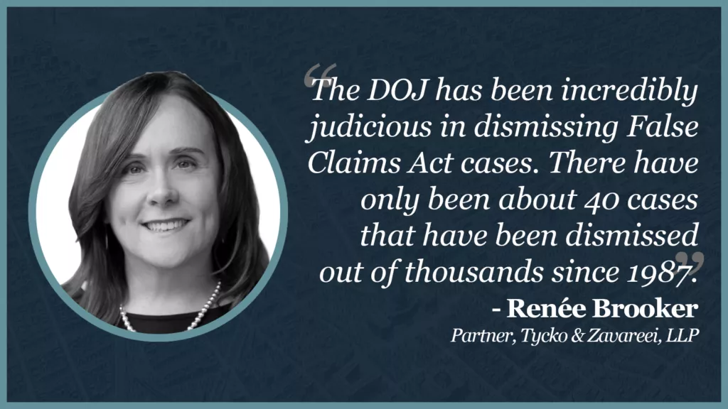 Partner Renée Brooker appeared on the Taxpayers Against Fraud Education Fund (TAF) “Fraud in America” podcast and discussed tips for future whistleblowers and her perspective from the relator’s bar.