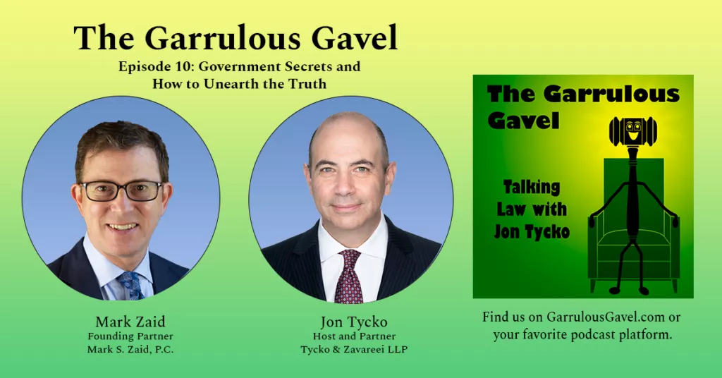 In the tenth episode of The Garrulous Gavel, host Jon Tycko has a conversation with Mark Zaid, the D.C.-based attorney who founded a preeminent practice representing clients in the national security realm and filing and litigating Freedom of Information Act requests. Jon and Mark discuss the FOIA case in which Mark sought revelation of the oldest classified documents still being kept secret by the U.S. government.